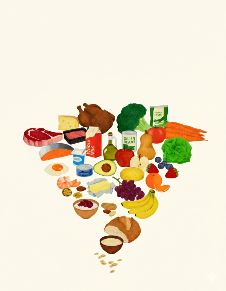 Die neue US-Ernährungspyramide stellt die bisherigen Prioritäten auf den Kopf: Protein, Vollfett-Milchprodukte und gesunde Fette bilden die Basis, während Getreide nur noch eine kleine Rolle spielt.